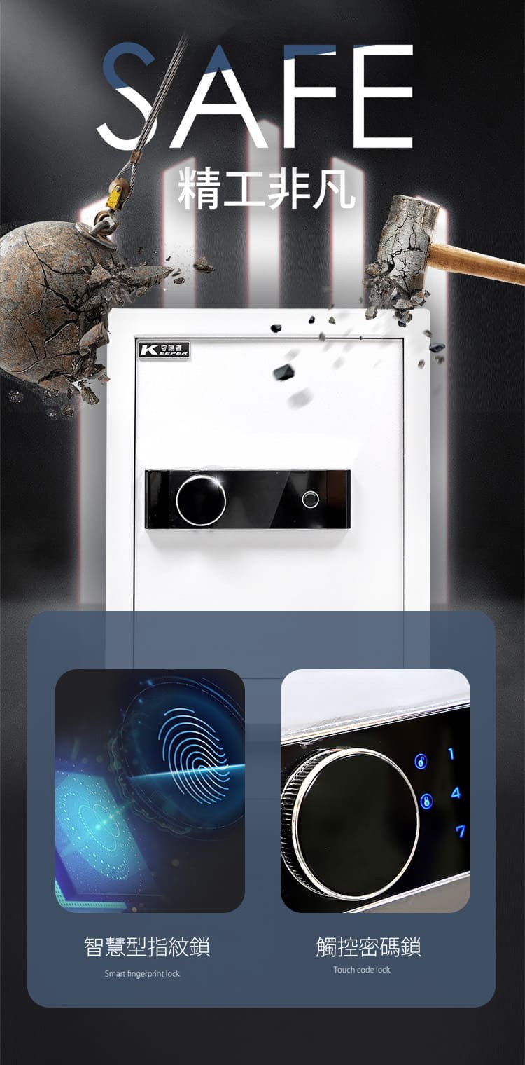 QNN 熱感應觸控指紋/密碼/鑰匙智能數位電子保險箱/櫃(SJB-35)(35(高)x40(寬)x33(深)cm)