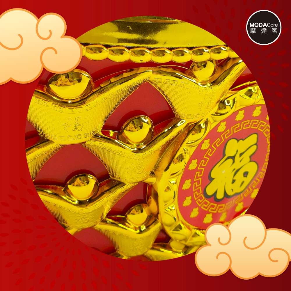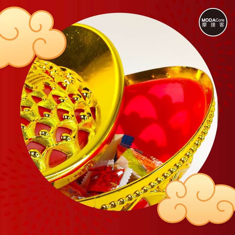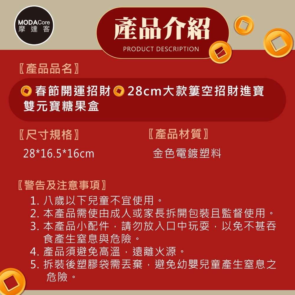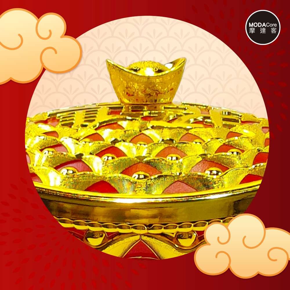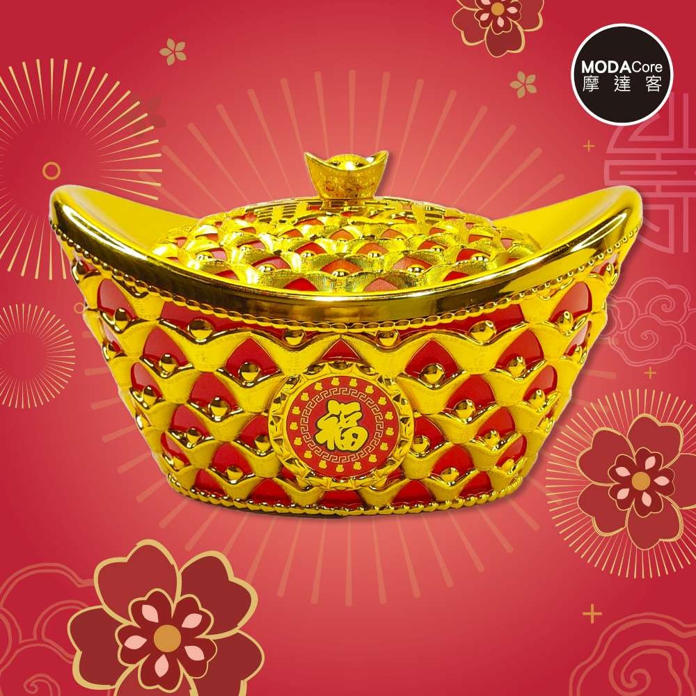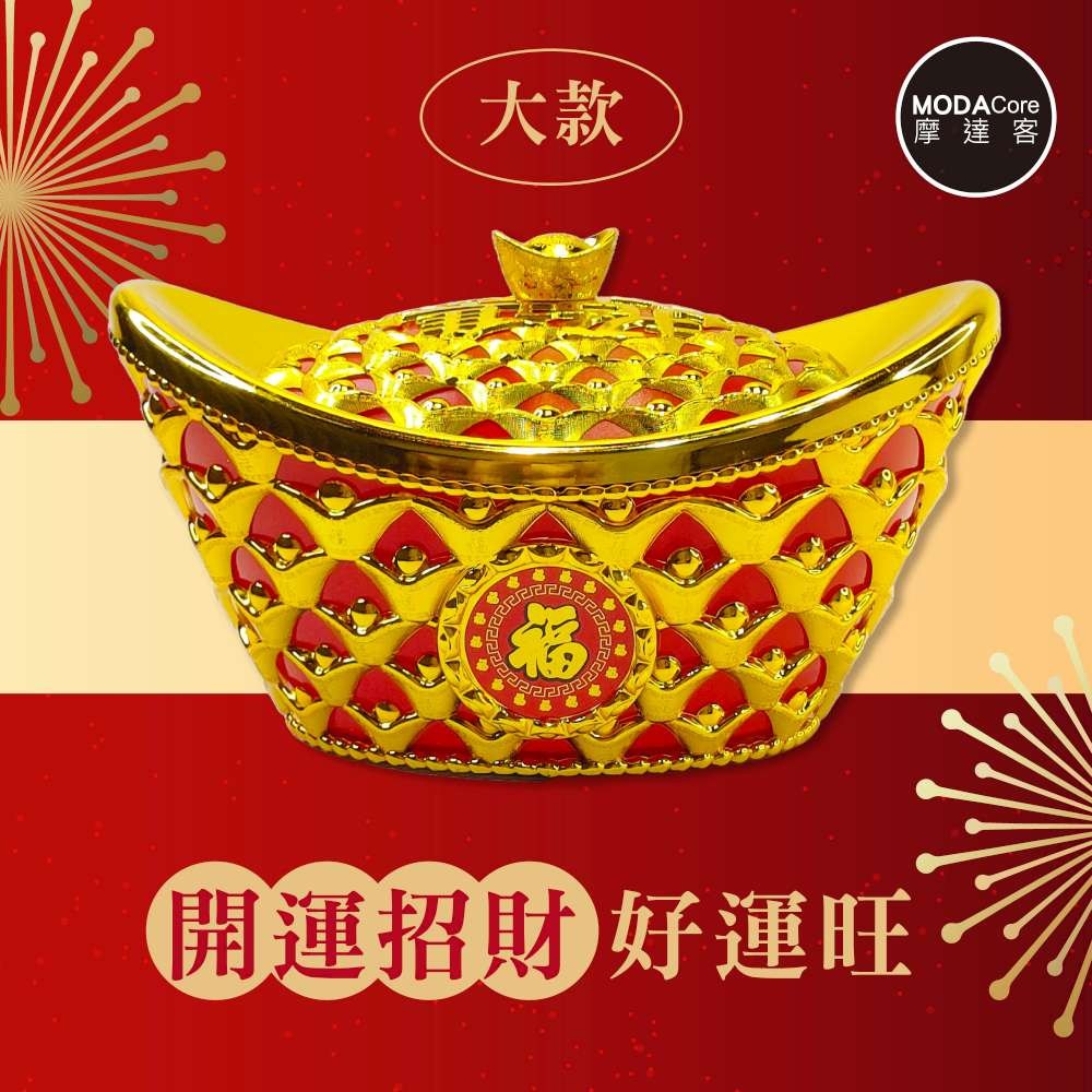 摩達客◉春節開運招財◉28cm大款簍空招財進寶雙元寶糖果盒 擺飾桌飾