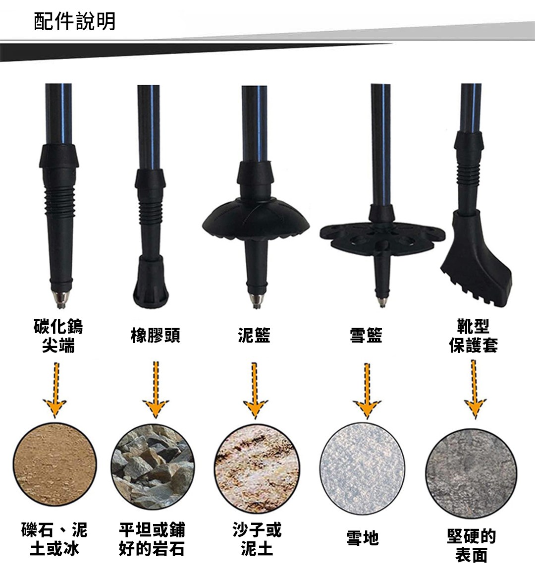 ◆ 多用途登山杖:平地健走/登山/雪地/石頭地