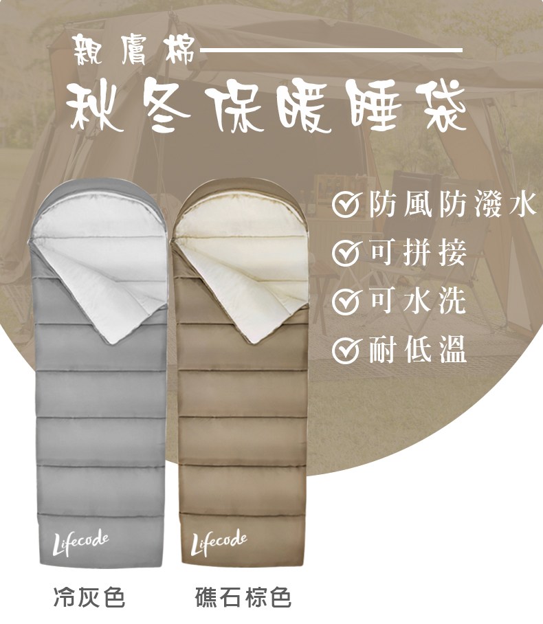LIFECODE 親膚棉秋冬保暖睡袋/可水洗/可拼接-2色可選 12230113/7