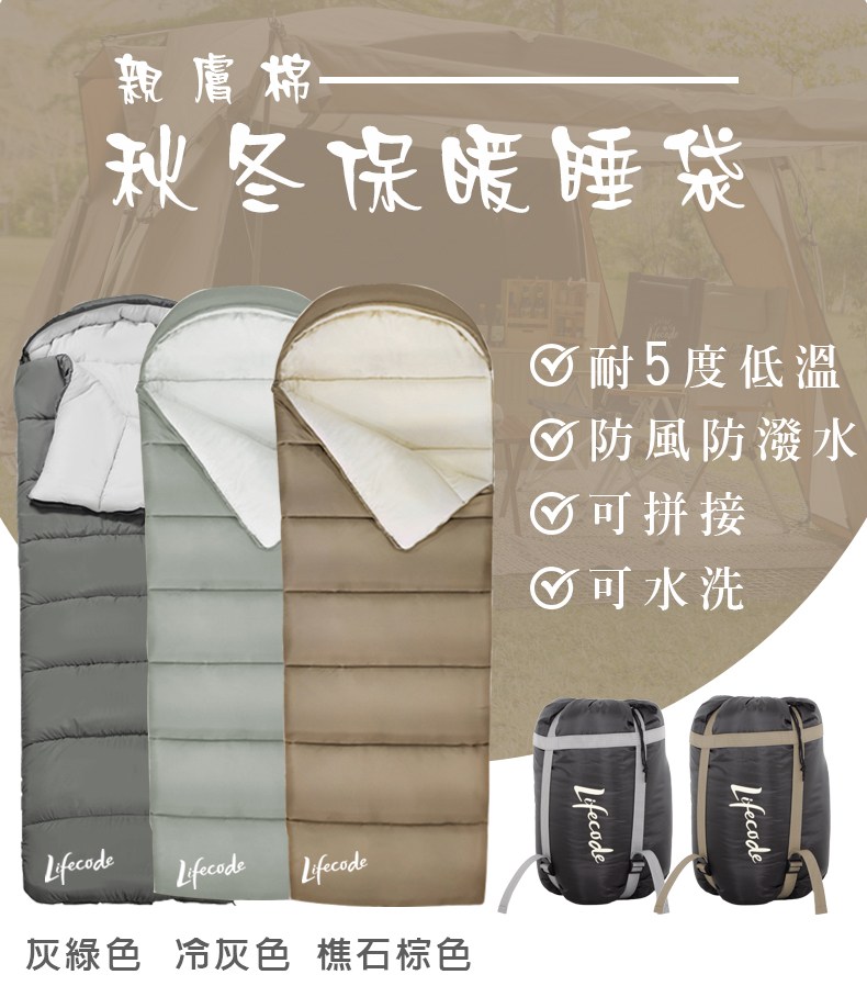 LIFECODE 親膚棉秋冬保暖睡袋/可水洗/可拼接-3色可選