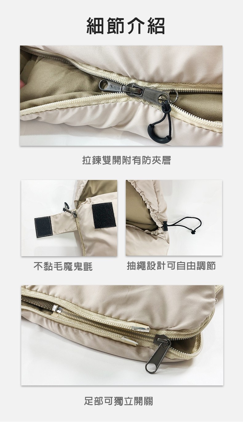 ◆ 可拼接全開式睡袋,底部有單獨拉鍊