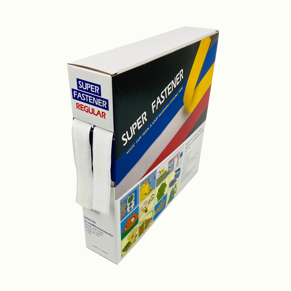 褙膠魔鬼氈盒裝 寬2.5cm 長25M 白色(勾面+毛面各1入)