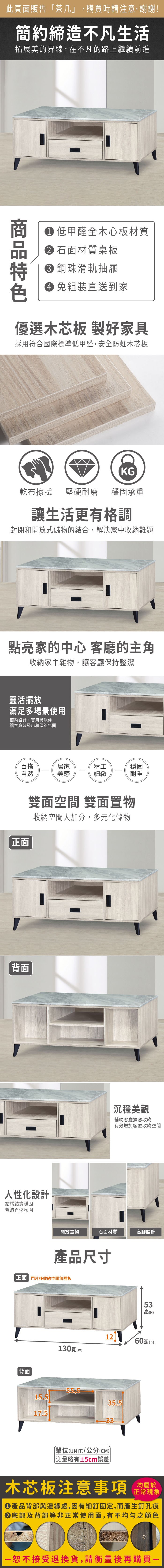 ASSARI-艾斯4.3尺石面白橡大茶几(寬130x深60x高53cm)