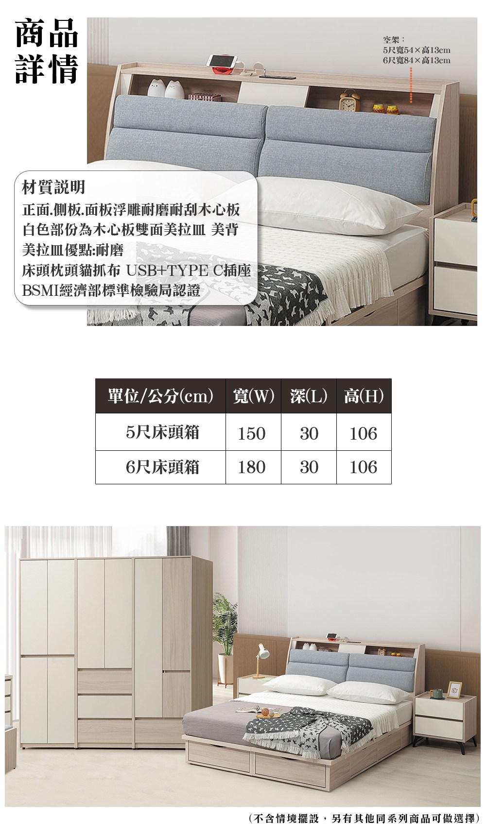 ※此賣場僅販售 澄木貓抓皮靠枕床頭箱(雙大6尺)※