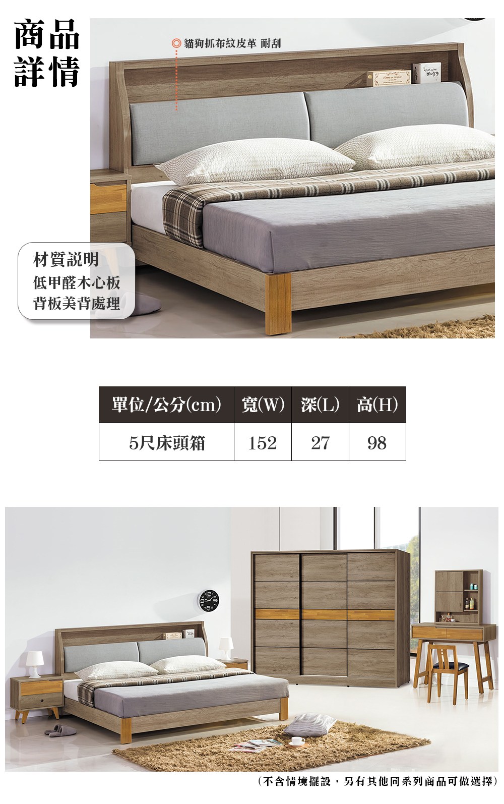 ※此賣場僅販售 愛亞5尺貓抓皮床頭箱※