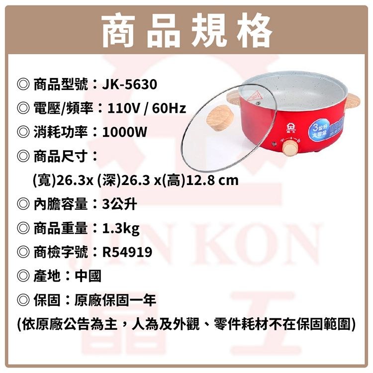 【Jinkon晶工牌】3公升多功能料理電碗 JK-5630
