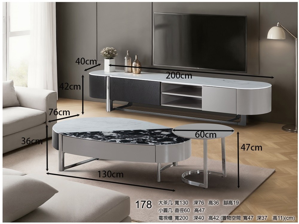 大茶几 : 寬 130 X 深 76 X 高 36 公分。