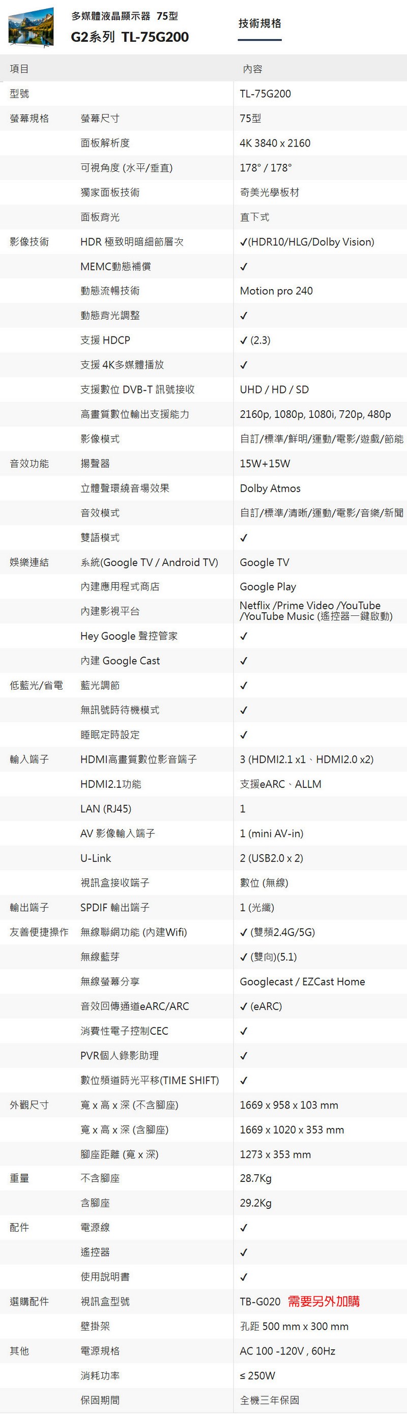 ◎型號:TL-75G200