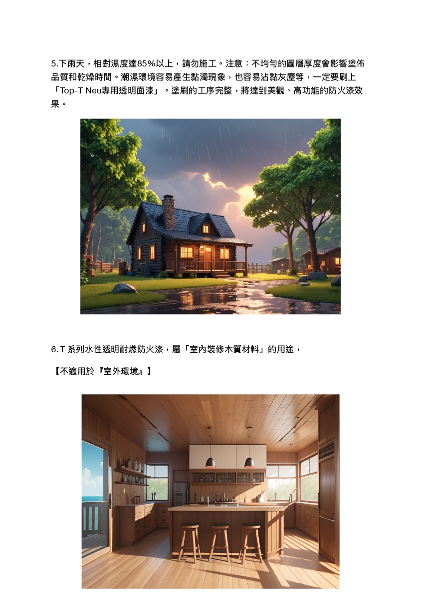 6.防火漆屬室內裝修木質材料用途,【不能用於『室外環境』】。