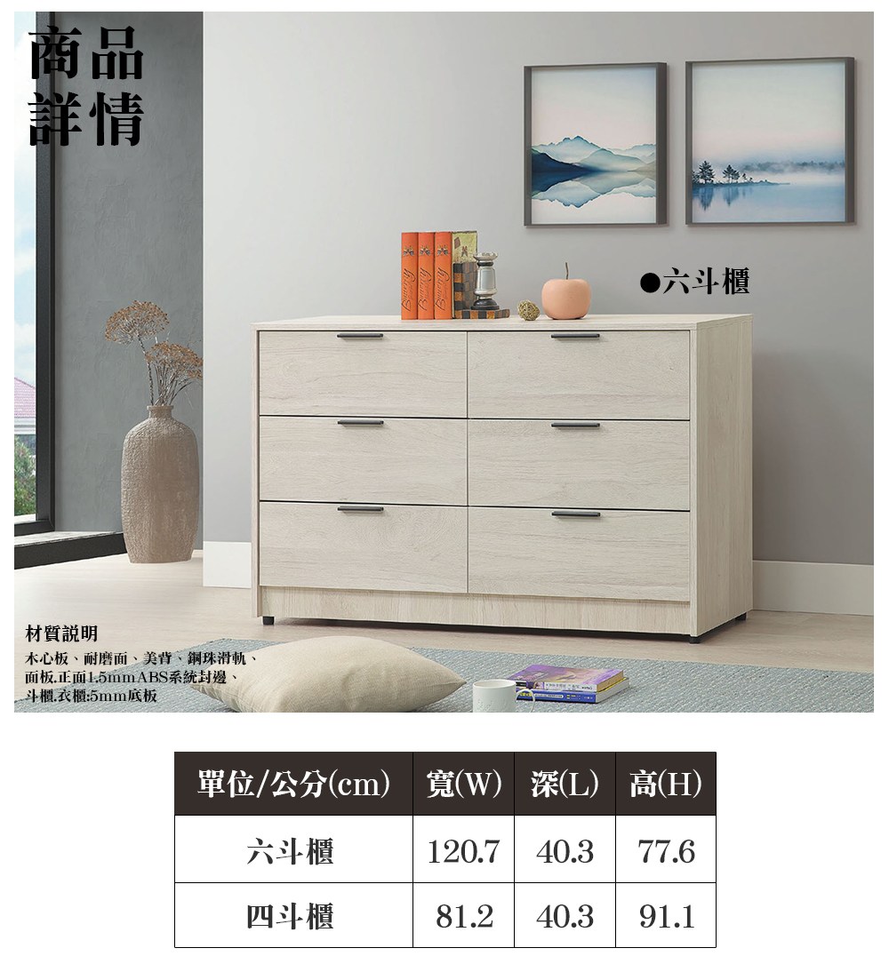 【顛覆設計】朵夏白榆木色4尺六斗櫃