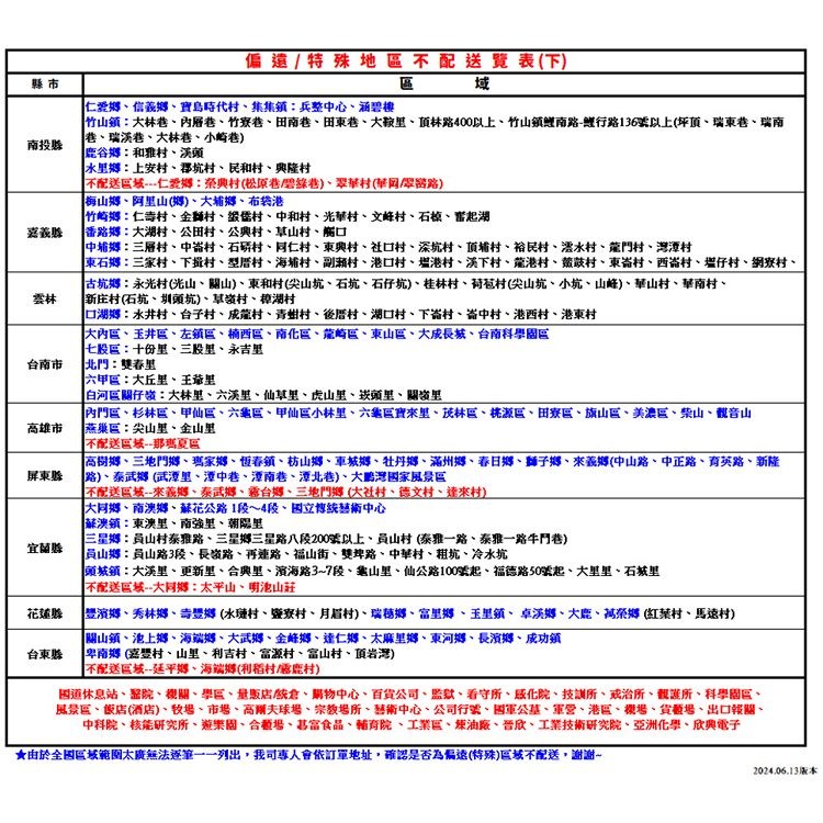 8. 此商品只限「台灣本島」運送,偏遠地區、離島無法配送,