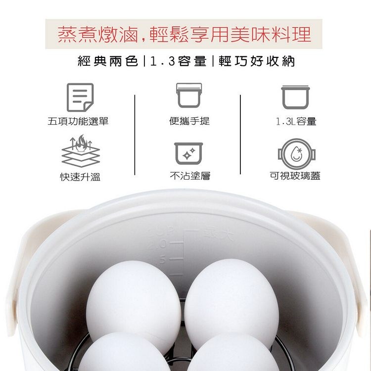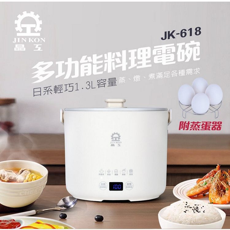 【Jinkon晶工牌】1.3公升多功能電碗-白 JK-618W