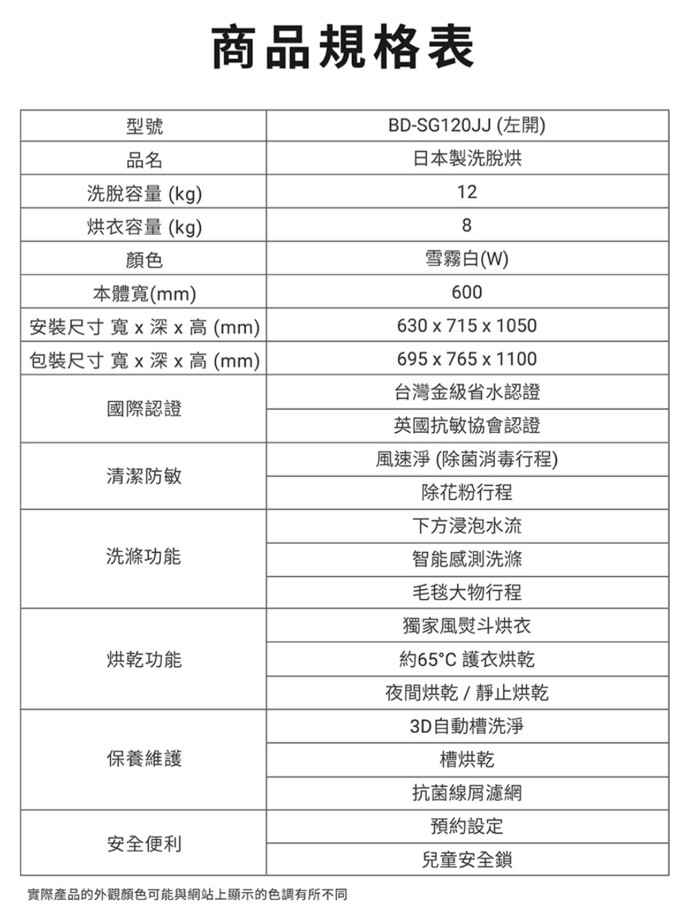 HITACHI 日立 12KG BD-SG120JJ-W 日製智能感測變頻左開滾筒洗脫烘洗衣機
