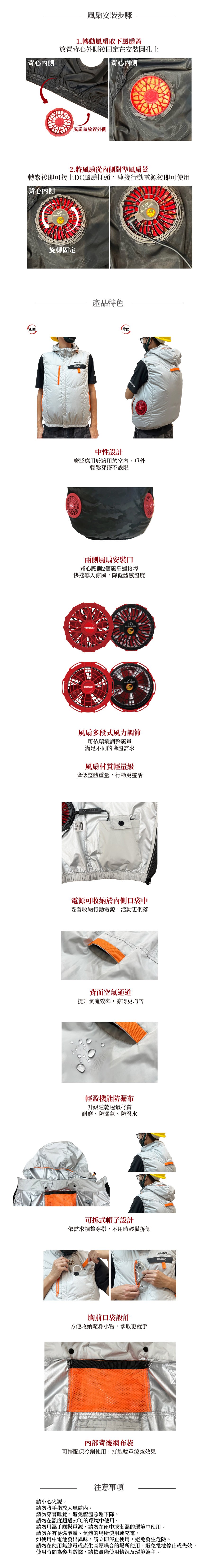 風扇衣本身只有防潑水功能,請勿當作雨衣使用