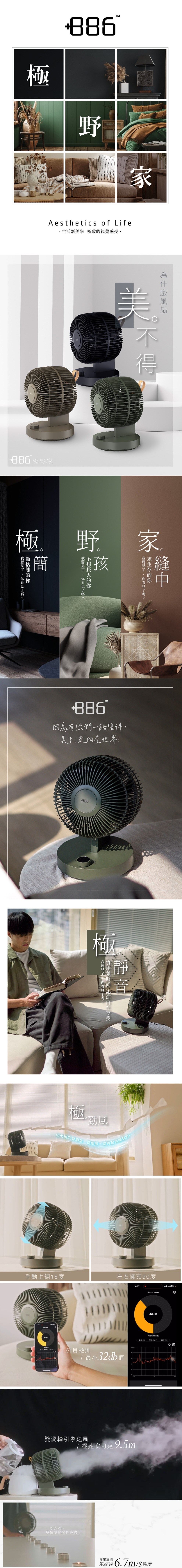 +886 極野家 8吋 擺頭靜音款 雙葉空氣循環扇 奶茶棕