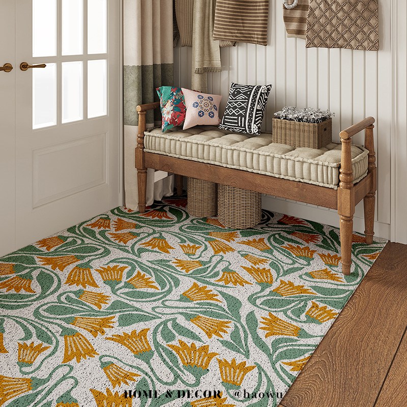 【好物良品】80x120cm_花卉系列陽台玄關可剪裁絲圈刮泥地墊80x120cm 鄉村田園