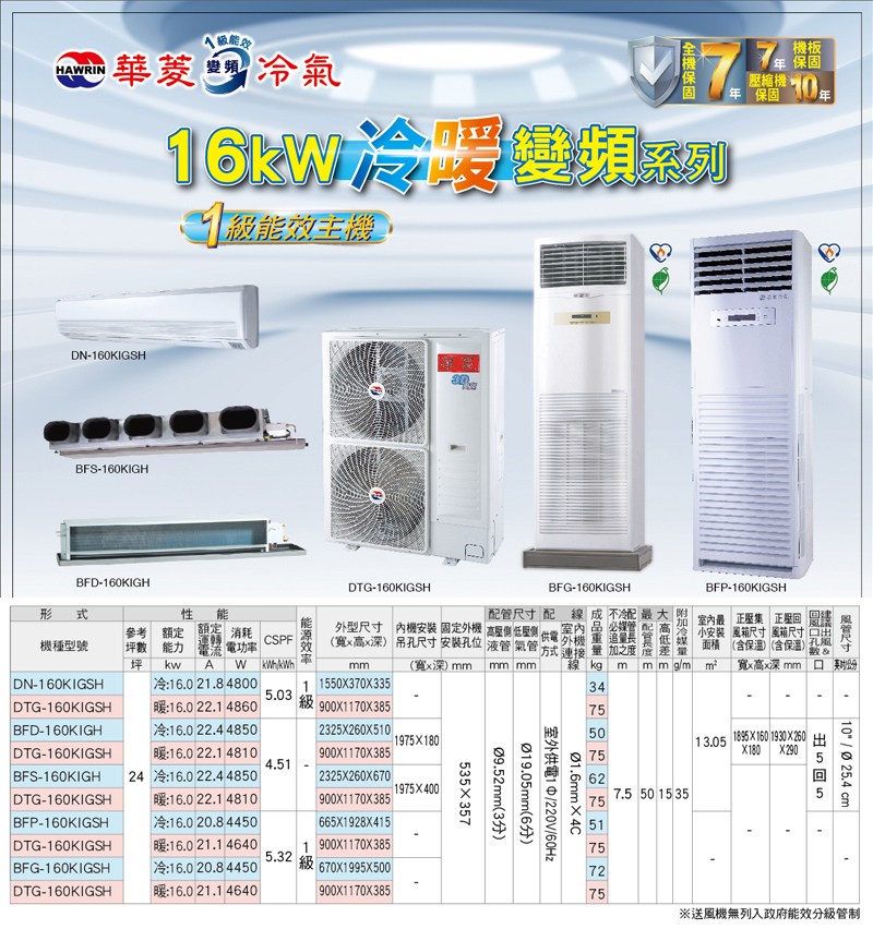 (送14吋風扇)華菱 22-24坪正壓式單相變頻冷暖落地箱型分離式空調DTG-160KIGSH/BFP-160KIGSH