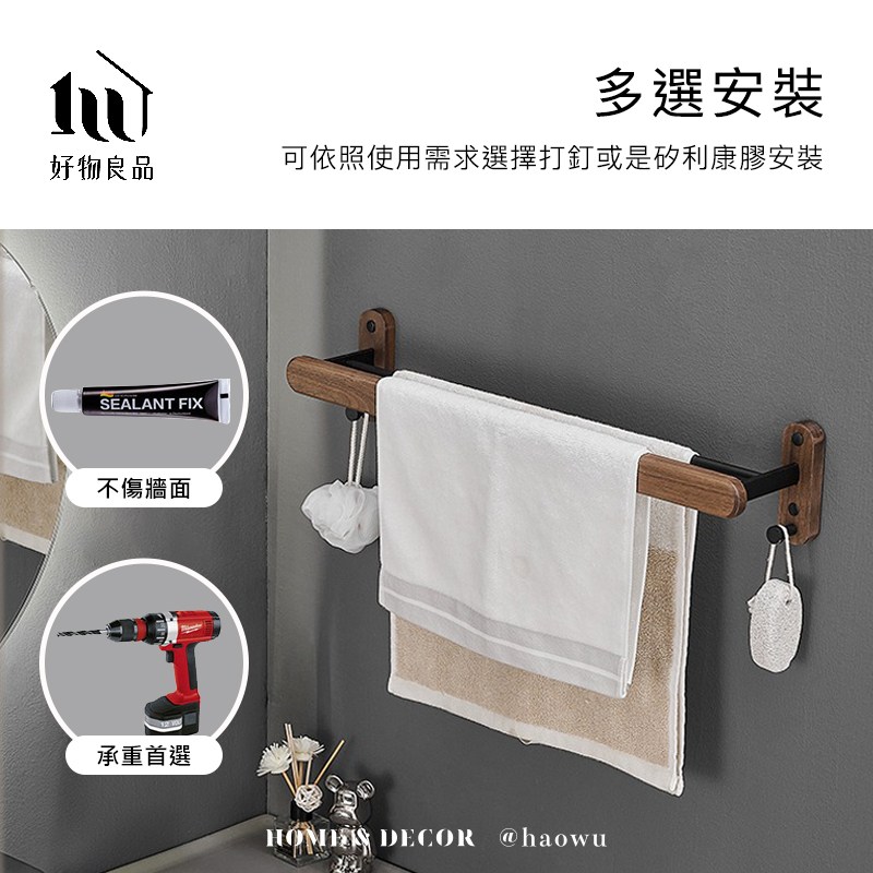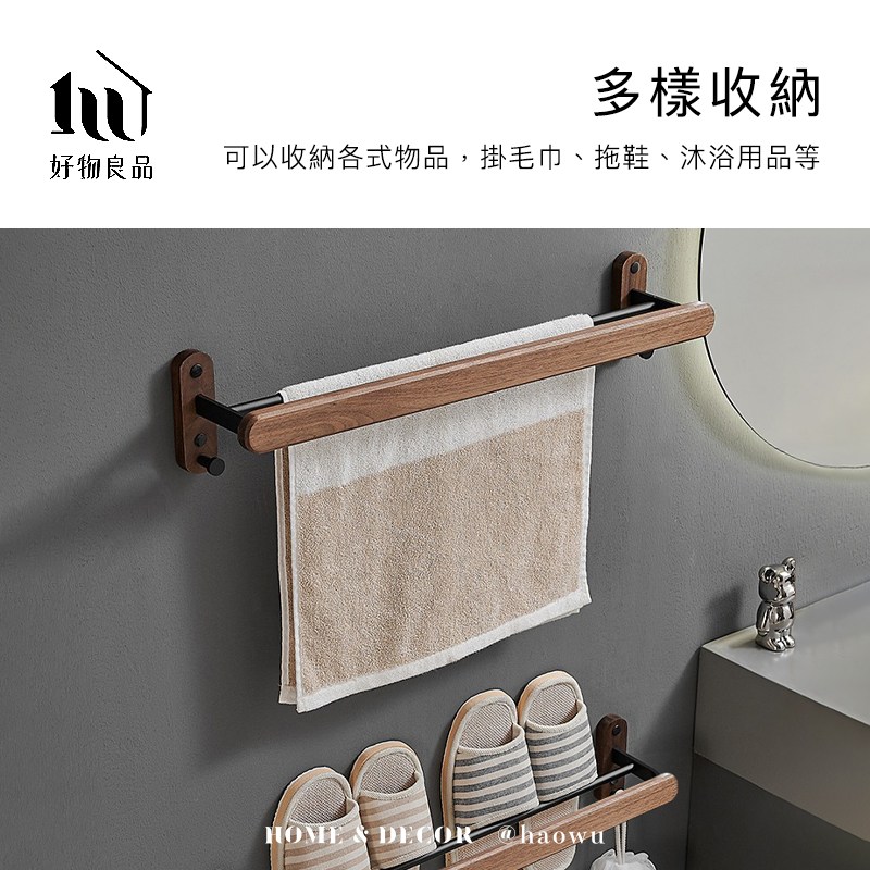點我下載【好物良品】浴室防水防鏽原木單層毛巾掛架深胡桃木+黑色 60x14x12cm
