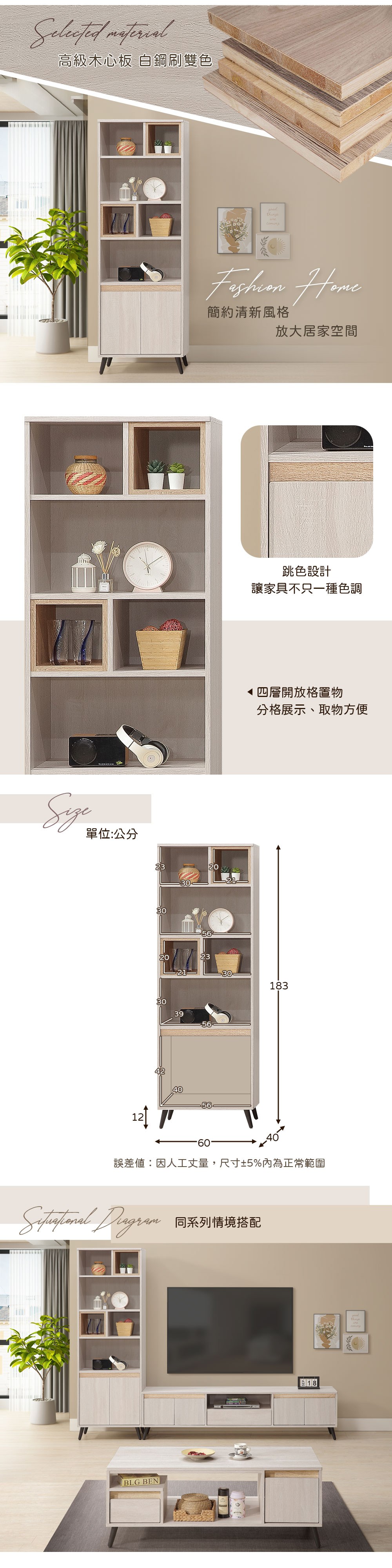 直人木業-COCO奶油風開放書櫃(高79公分/寬40公分)