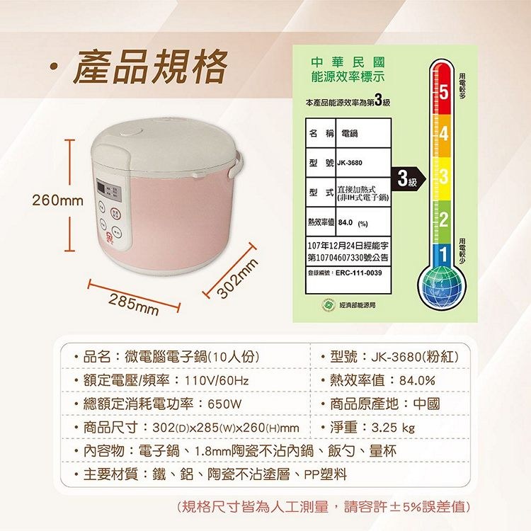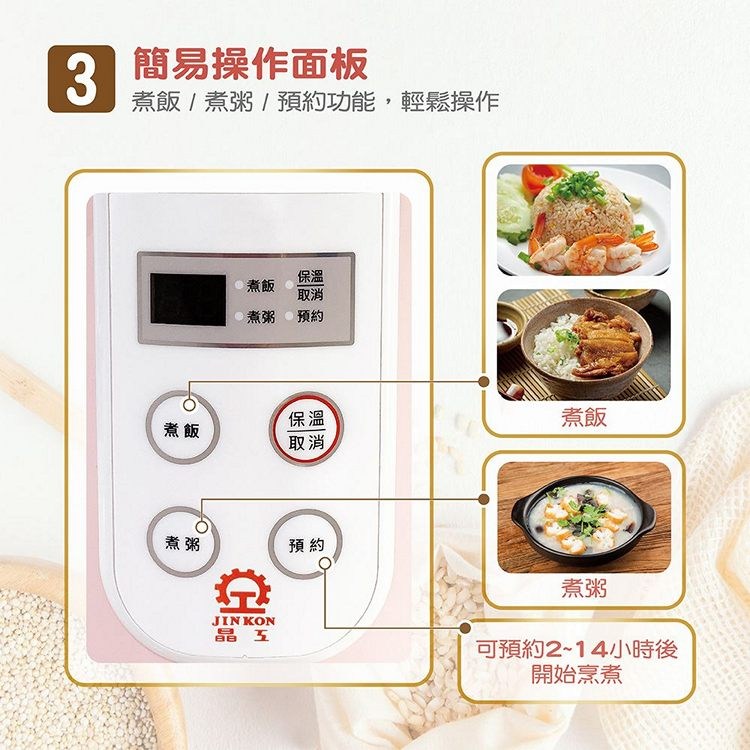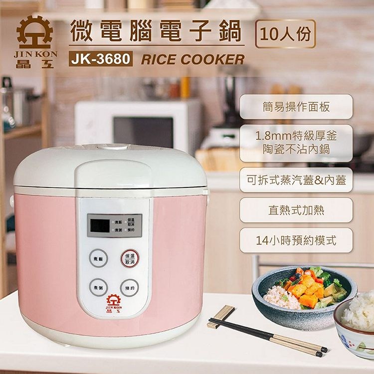 【Jinkon晶工牌】十人份微電腦電子鍋-粉 JK-3680