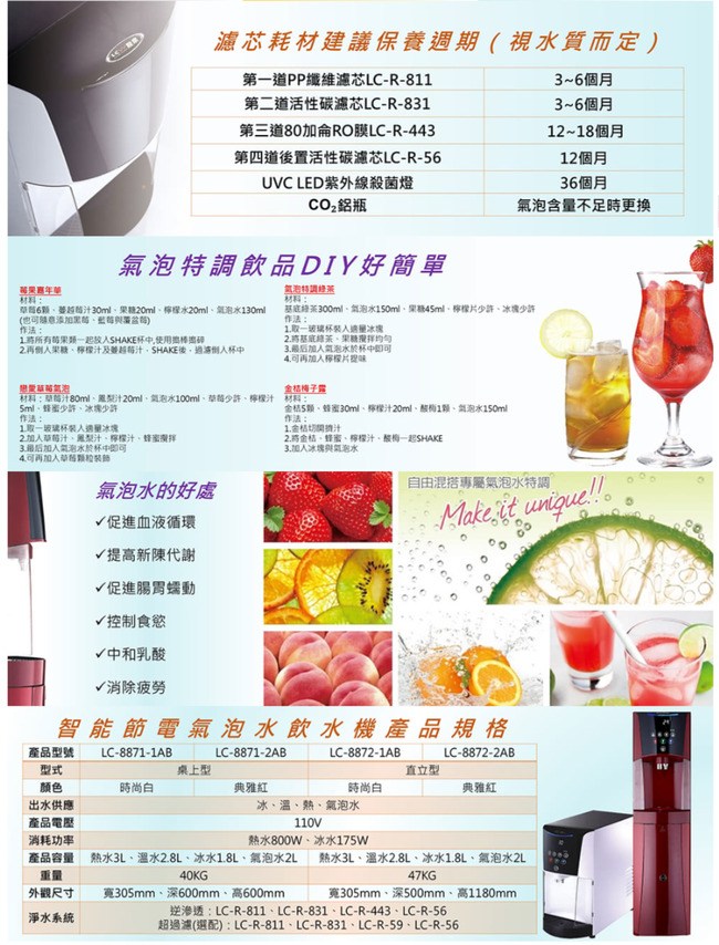 【LCW龍泉】桌上型智能節電氣泡水飲水機 LC-8871時尚白