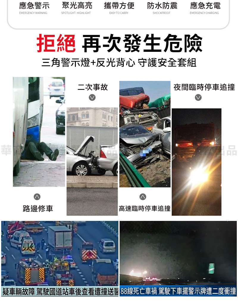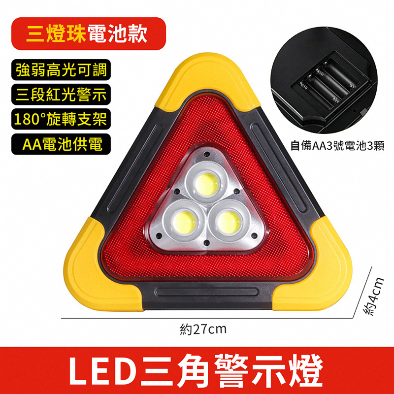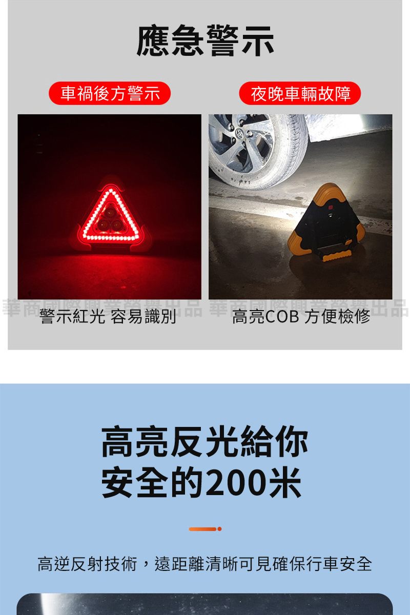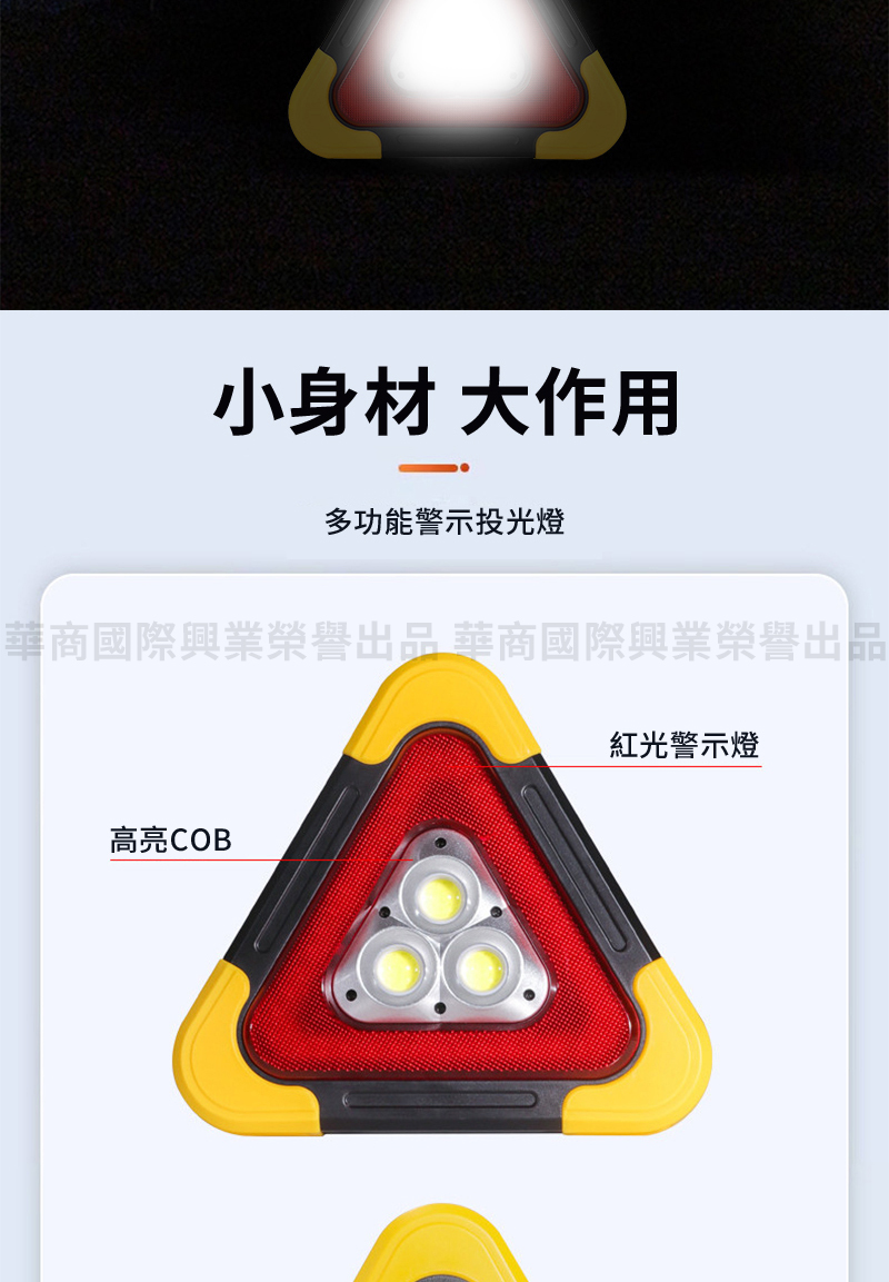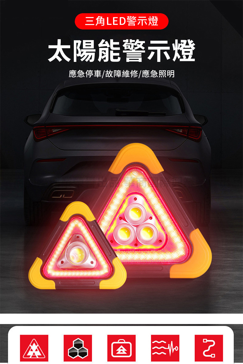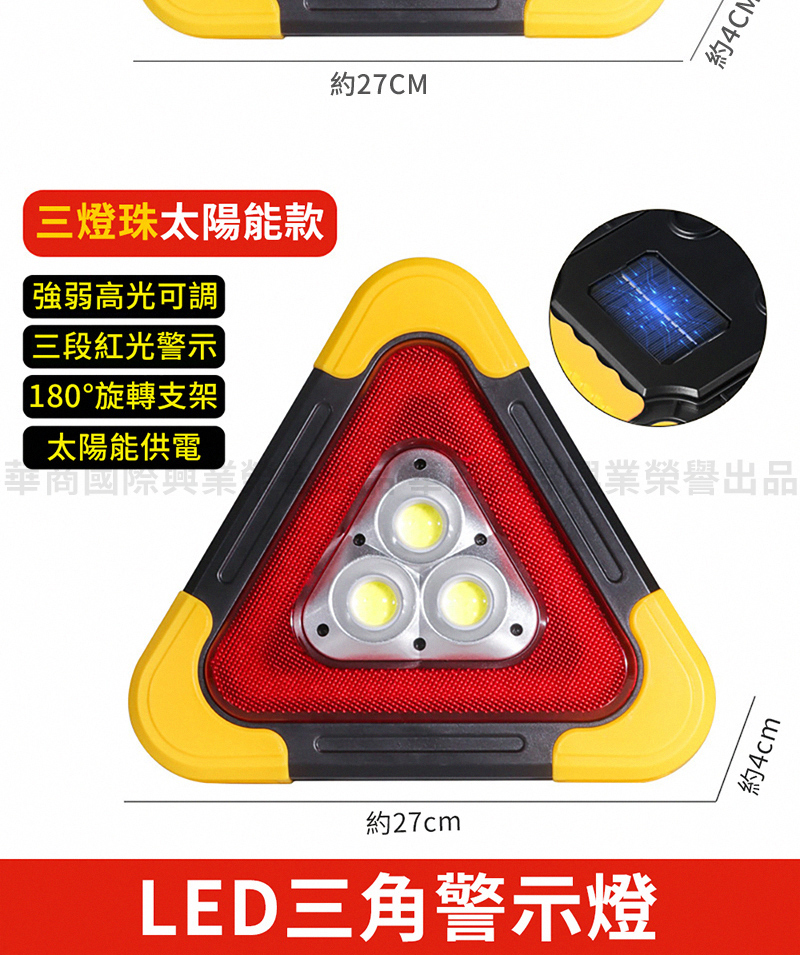 OMYCAR 新一代加大款超亮太陽能LED三角警示燈 ABS材質 268 x 268 x 50mm 1個