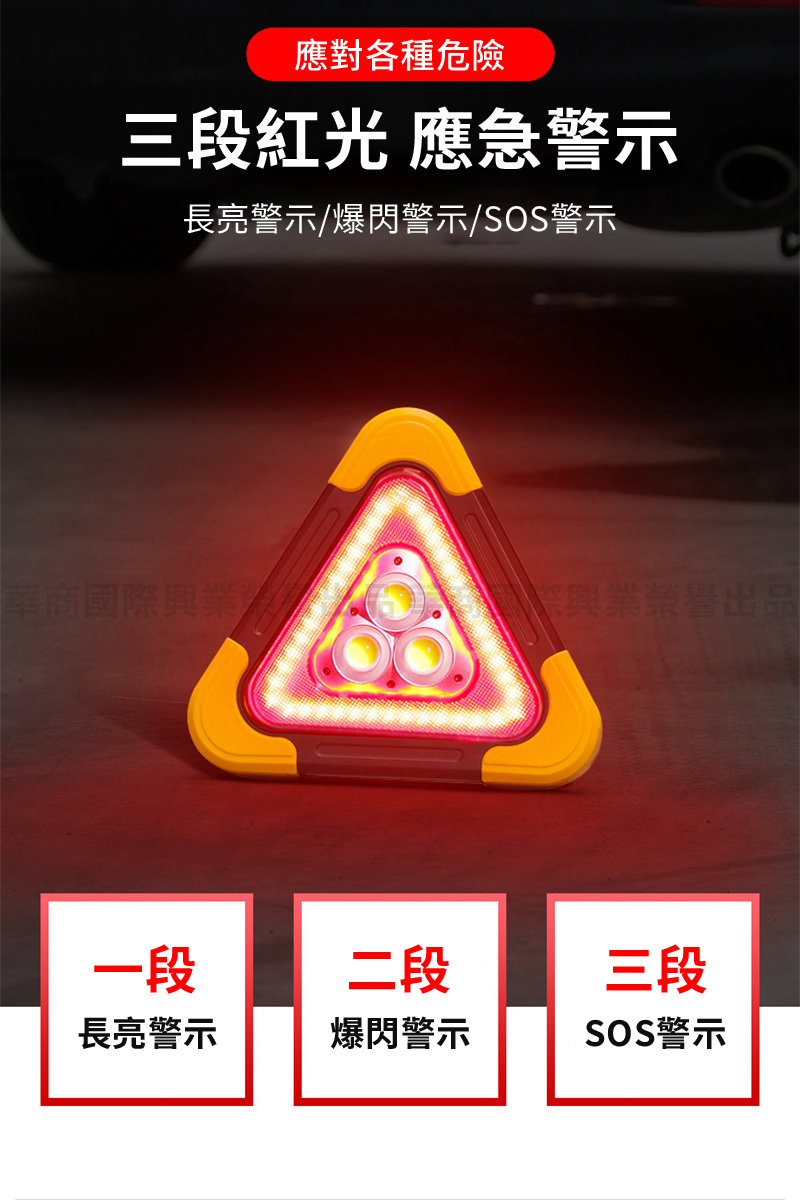 大業流通 太陽能站立/手提兩用3合1警示燈 附USB充電線 1個