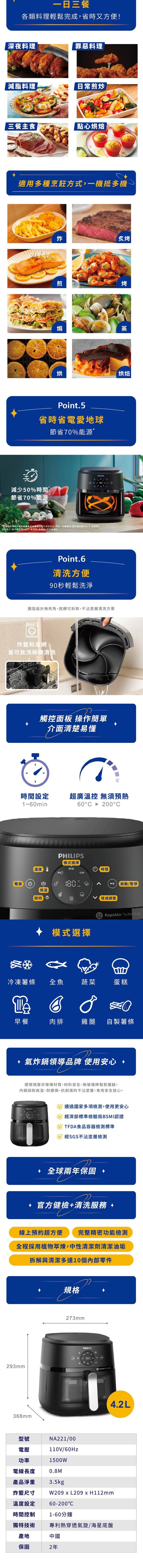 ★送氣炸鍋NA110+專用內鍋★飛利浦雙重脈衝智慧萬用鍋5L-金小萬(HD2195/50)