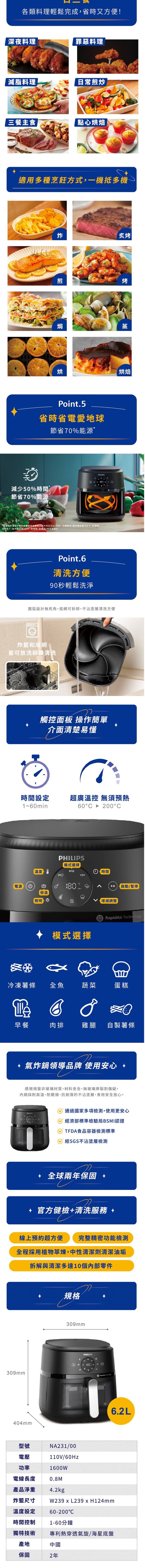 飛利浦PHILIPS健康氣炸鍋2000 系列/6.2 公升/NA231/00/台