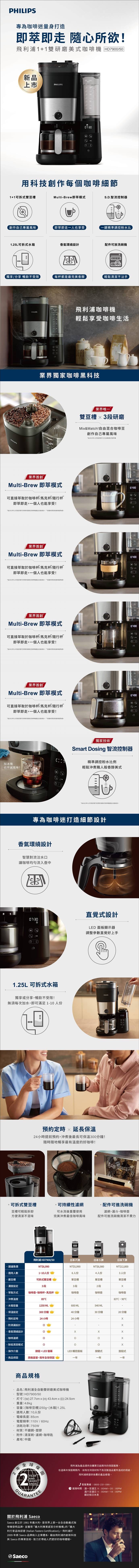 新品上市★Philips 飛利浦 全自動雙研磨美式咖啡機 HD7900/50