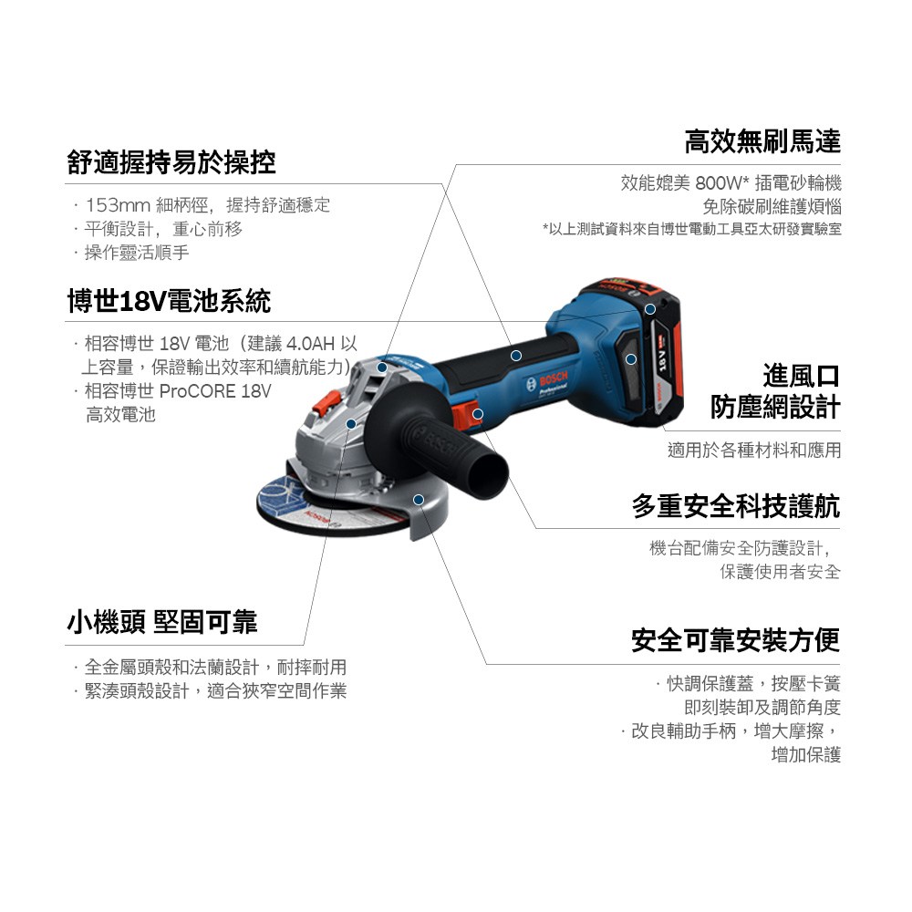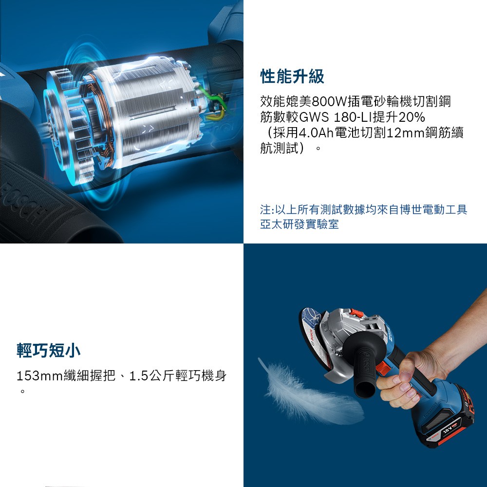 BOSCH博世 18V鋰電無刷4英吋砂輪機GWS 180-LI(空機)