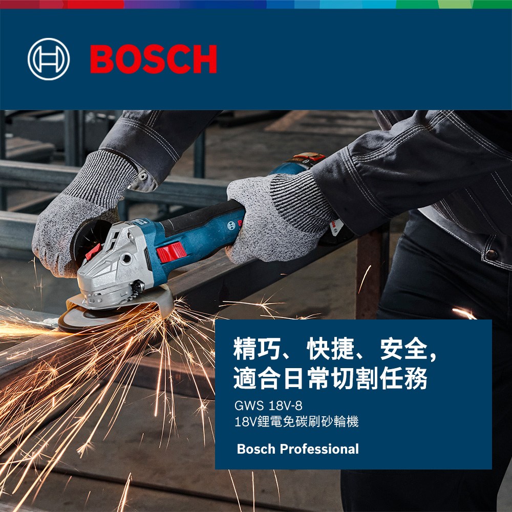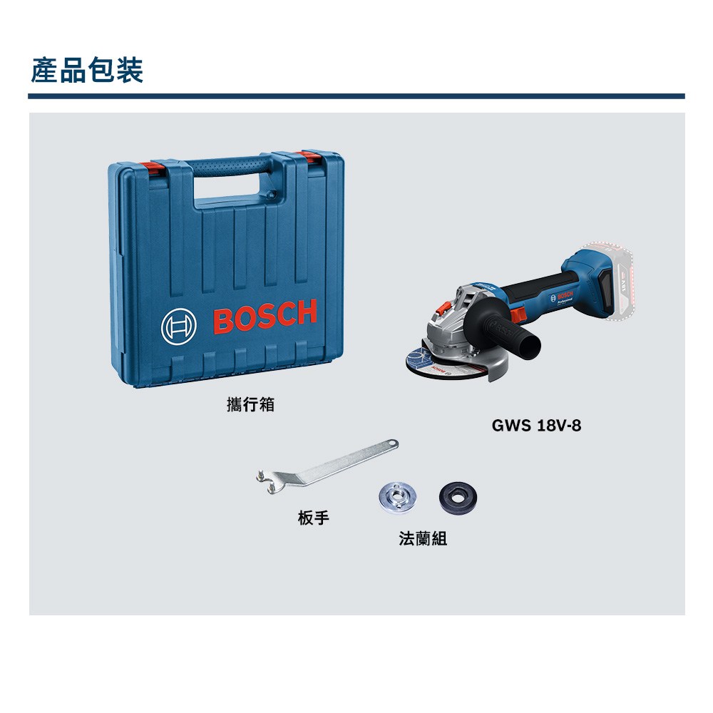 BOSCH 18V 免碳刷砂輪機 GWS 18V-8 (單機)