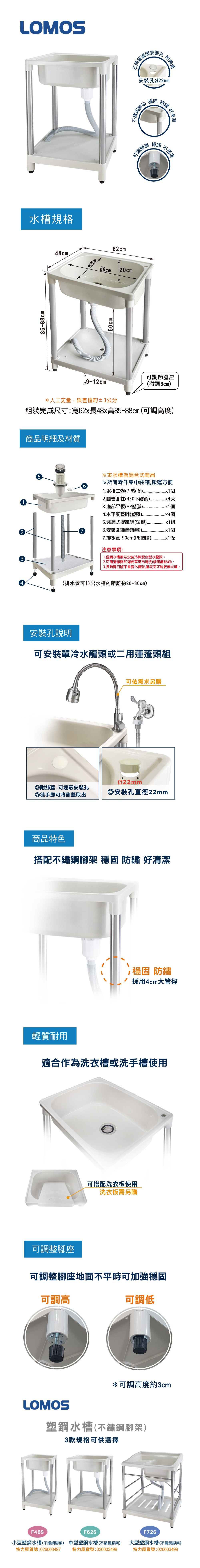 LOMOS 中型塑鋼水槽 不鏽鋼腳架 附可止水三段蓮蓬頭組 F62S-D31