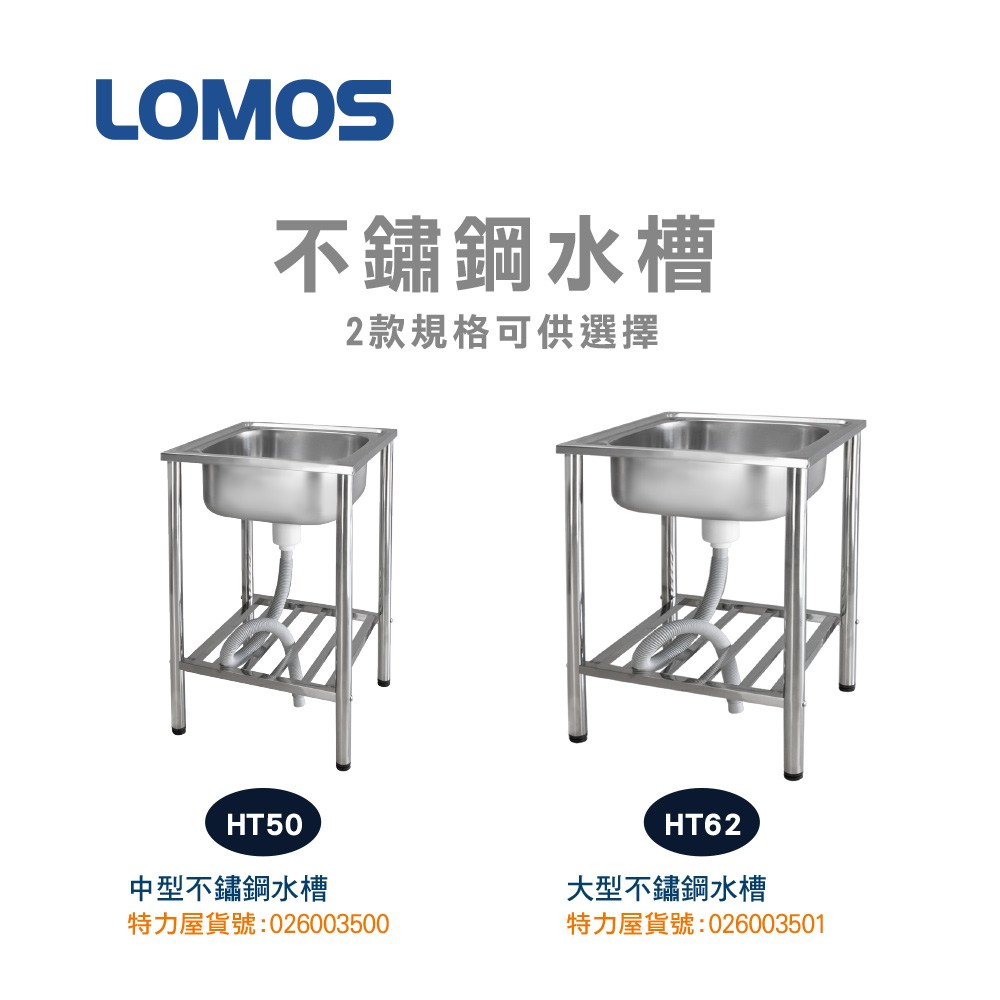 LOMOS 大型不鏽鋼水槽 62x46cm 附二段沖洗組 HT62-A12