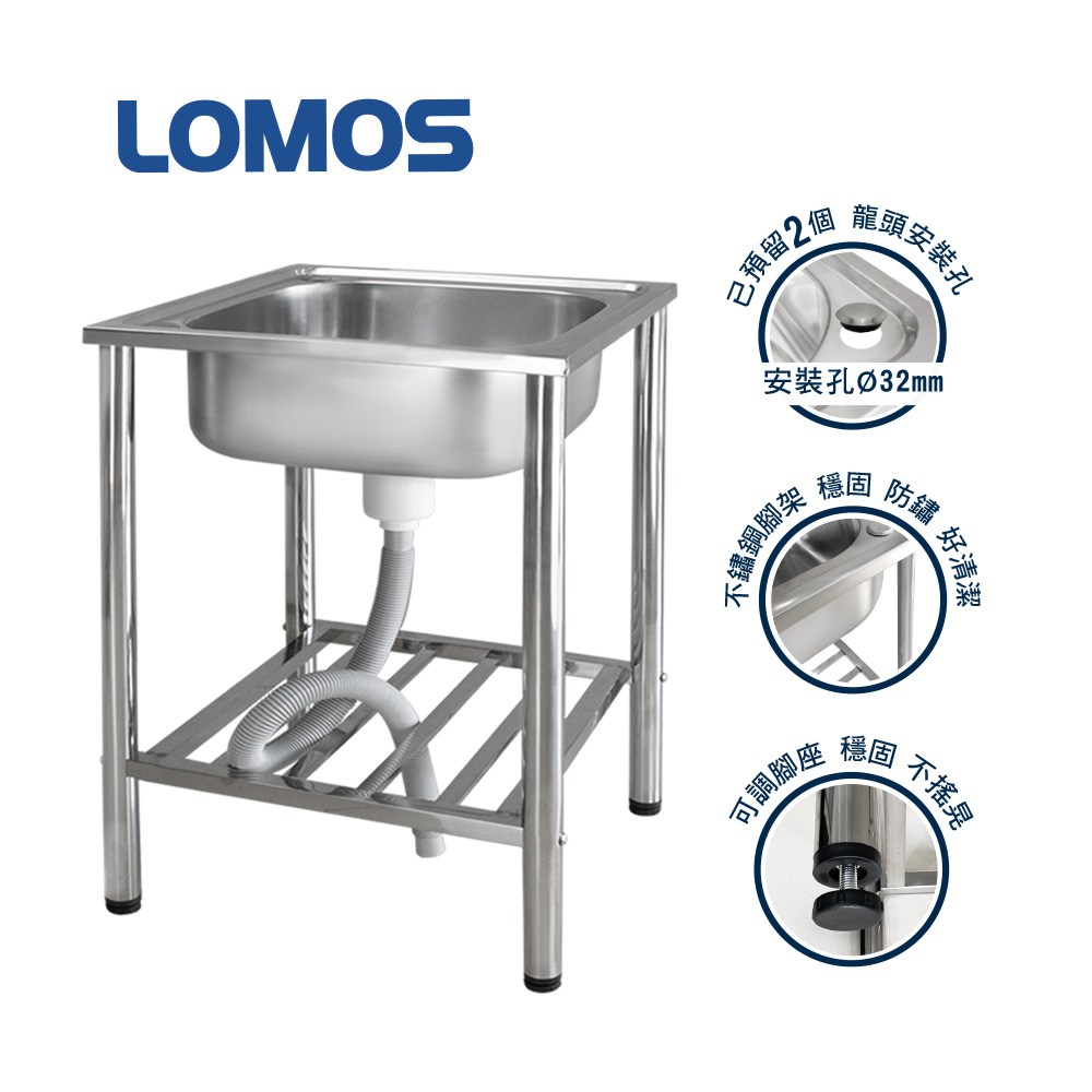 LOMOS 大型不鏽鋼水槽 62x46cm 冷熱水混合龍頭低L型管 HT62-M32