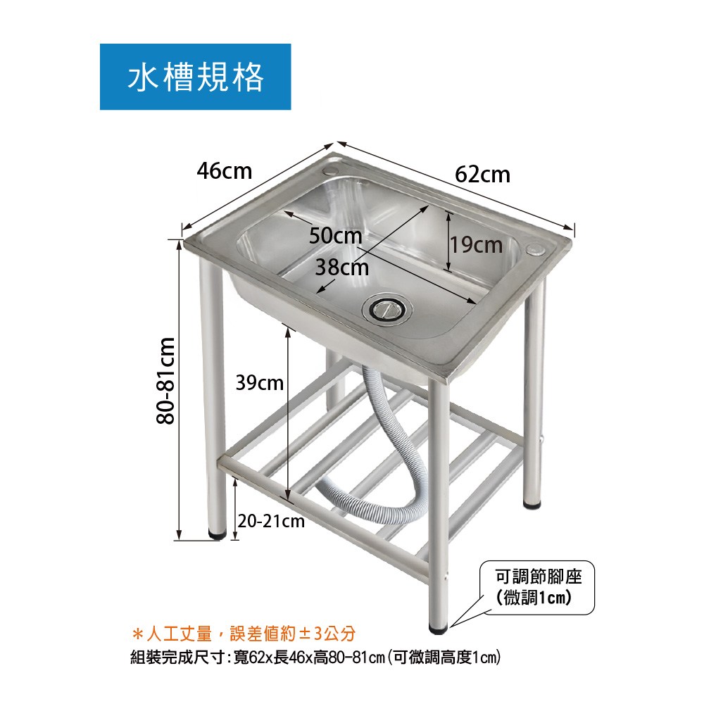 Toppuror 泰浦樂 頂級不鏽鋼304水槽 51 x 43 x 81cm 1個