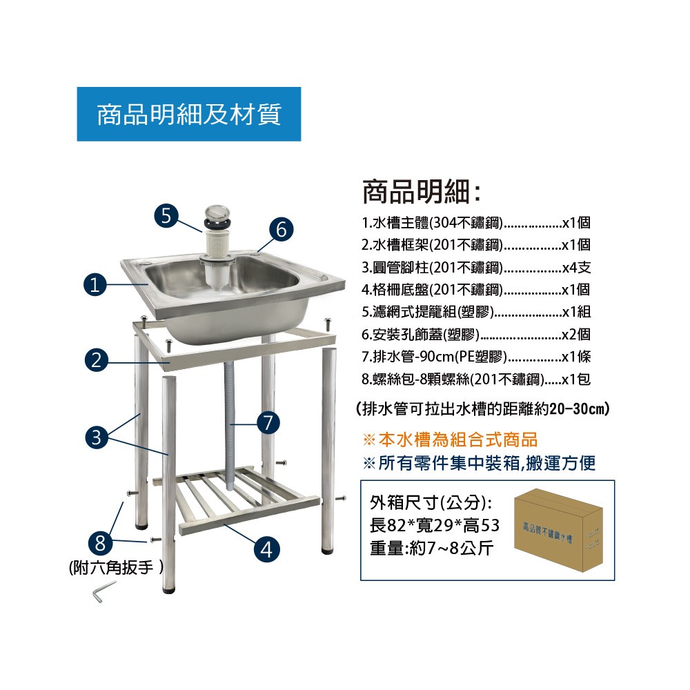 LOGIS-一體式不鏽鋼水槽(附龍頭) 洗衣槽 洗碗槽(2020-60