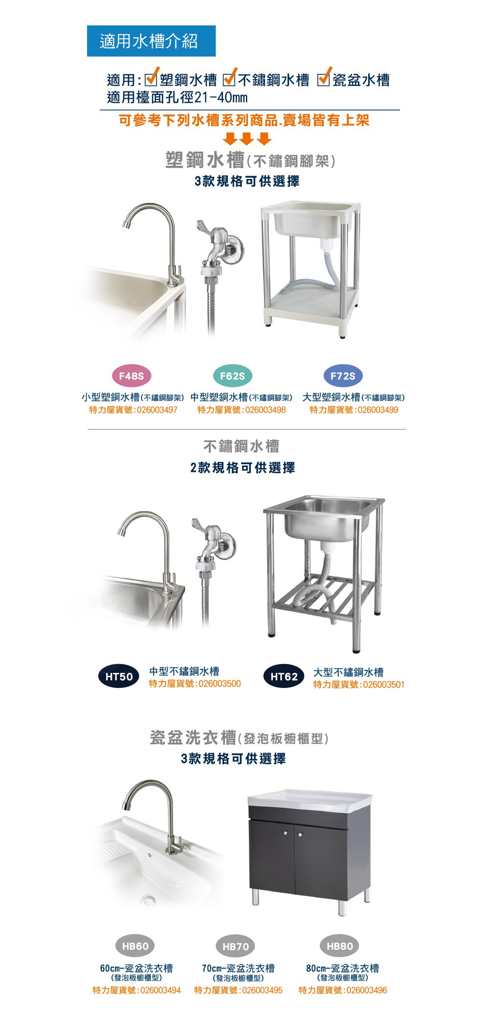 水槽用 單冷水龍頭安裝套組 萬向可彎管 C22