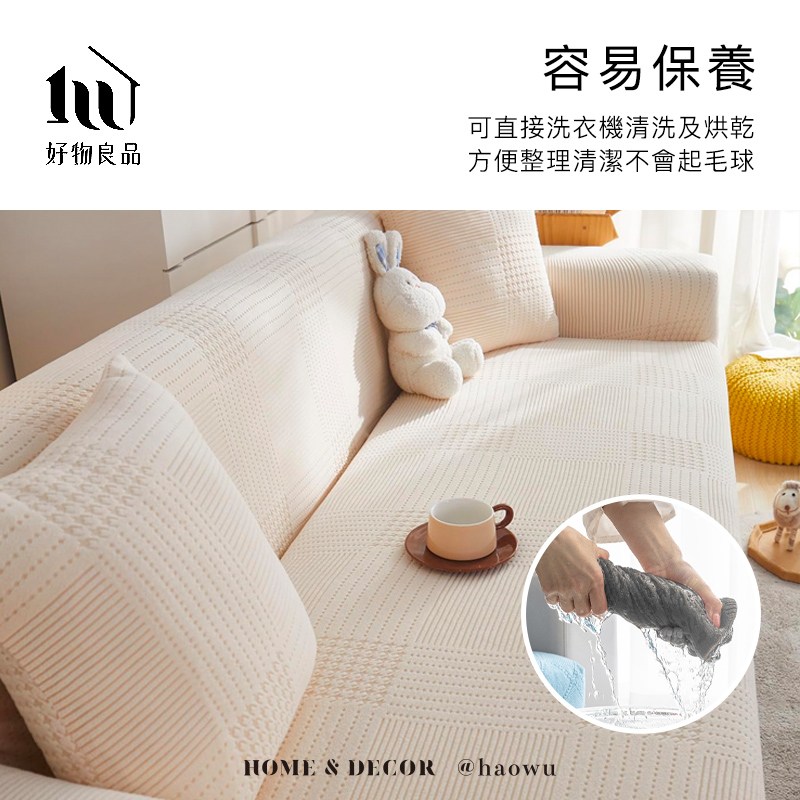 【好物良品】四季通用厚感雪尼爾親膚系列《質感深灰》立體防滑刺繡沙發墊組合|可訂製尺寸請聯繫LINE客服@haowu