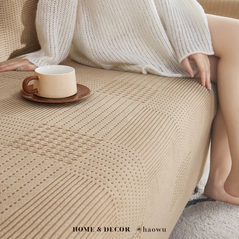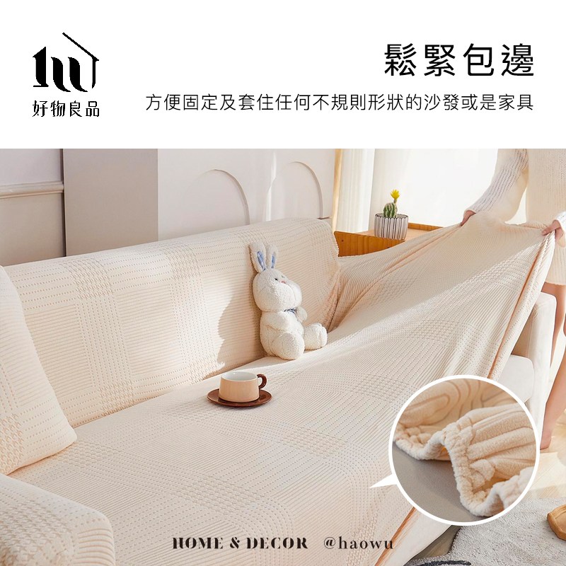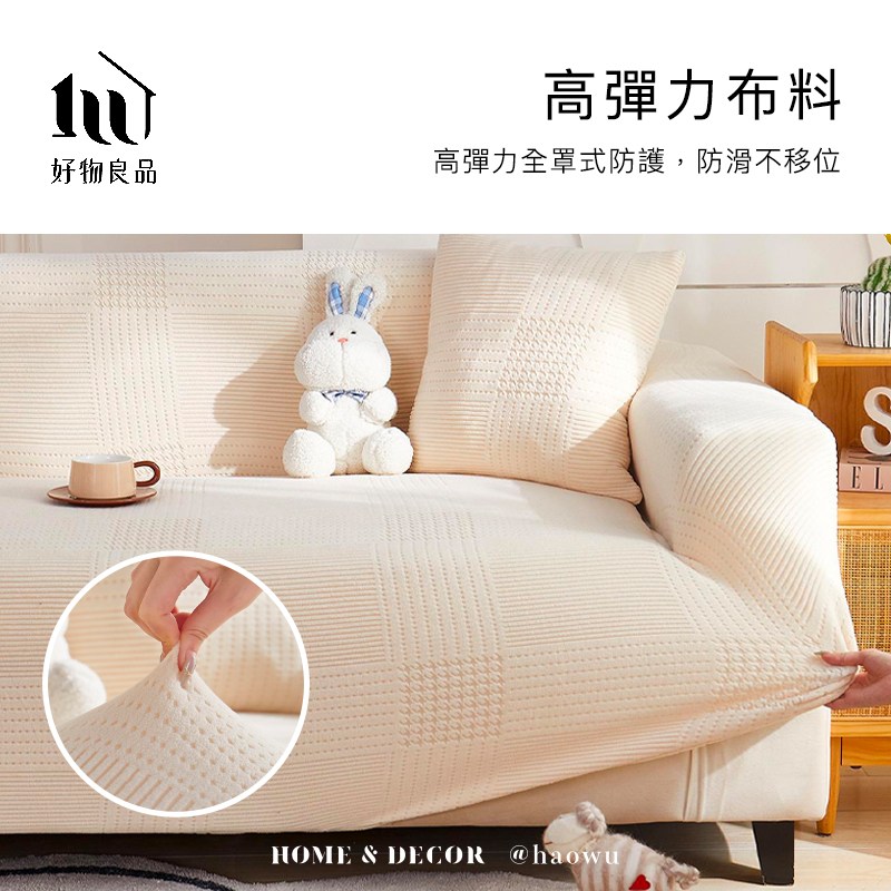 【好物良品】藝術紋理系列《深灰色》防貓抓系列高彈力立體提花彈力沙發罩|贈抱枕套*1+泡棉條