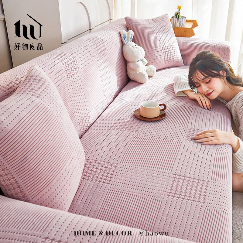 【好物良品】抽象藝術系列《粉色》防貓抓系列高彈力立體提花彈力沙發罩|贈抱枕套*1+泡棉條