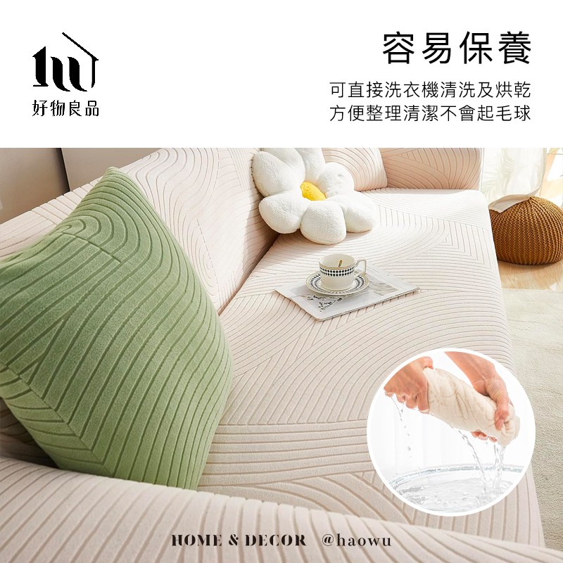【好物良品】《三人座抽象藝術系列》立體提花彈力沙發罩180-220cm|5色任選 贈抱枕套x1粉色 三人座
