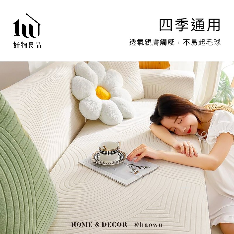 點我下載【好物良品】《四人座抽象藝術系列》立體提花彈力沙發罩230-280cm|5色任選 贈抱枕套x1灰色 四人座