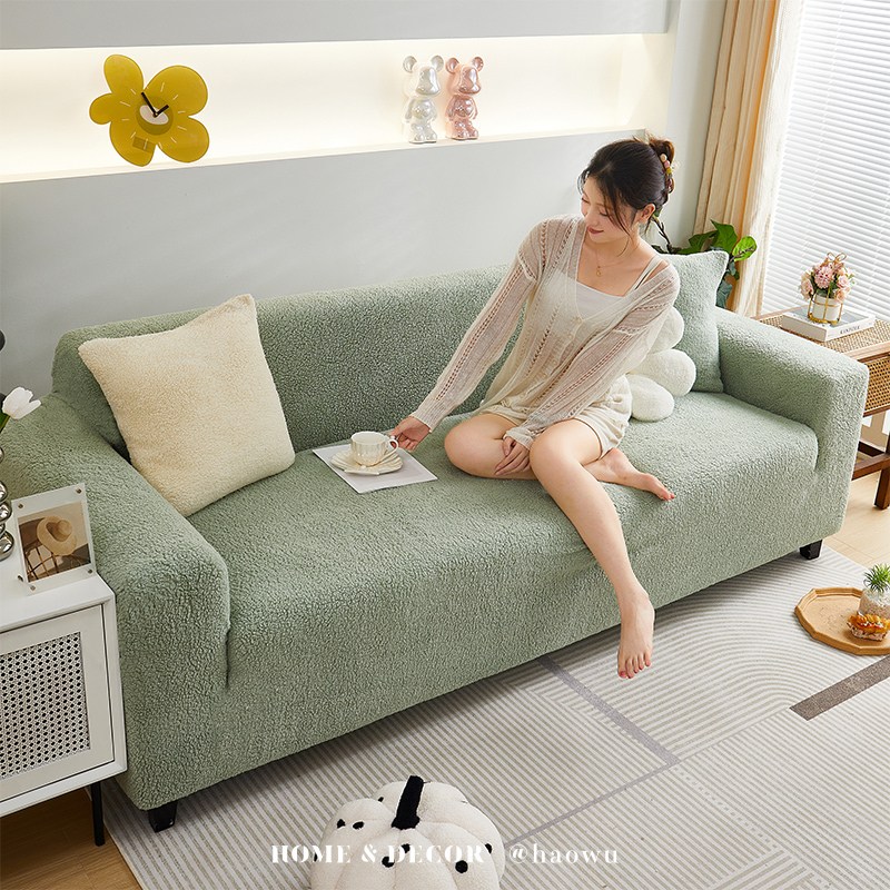 【好物良品】《四人座短毛保暖系列》立體提花彈力沙發罩230~280cm|5色任選 贈抱枕套x1抹茶綠 四人座