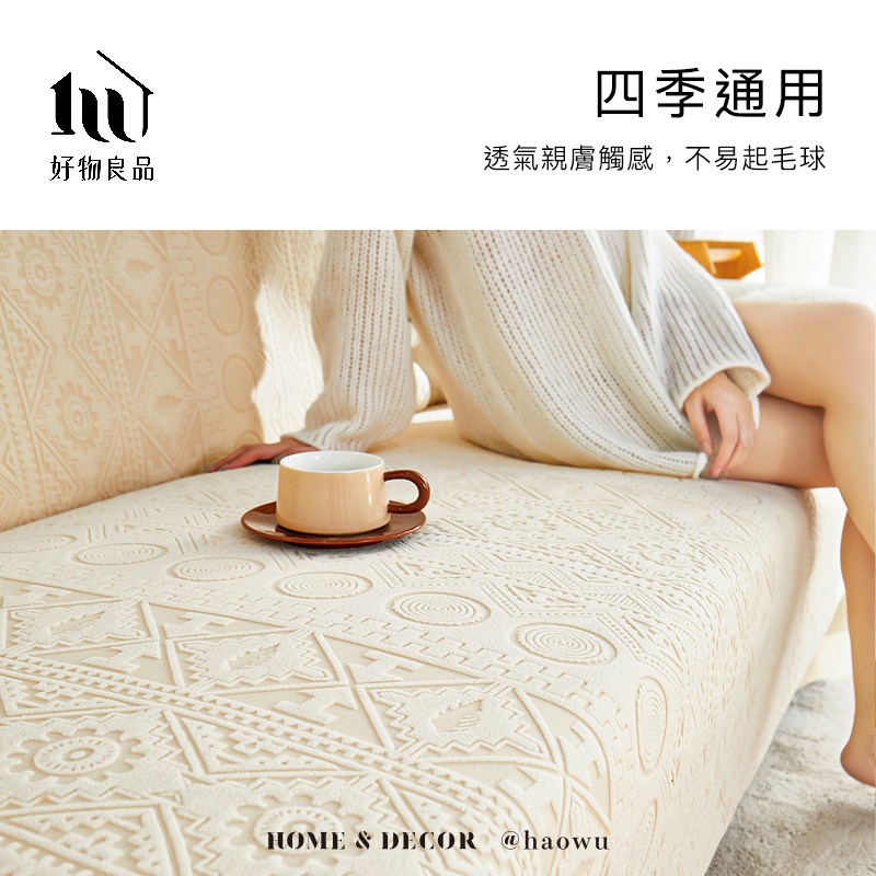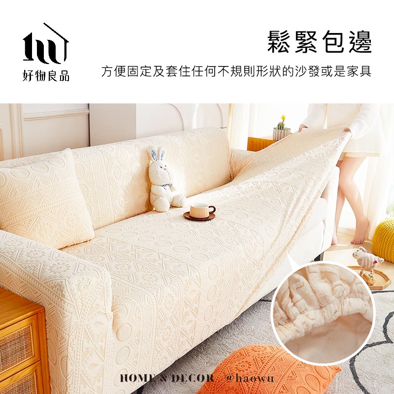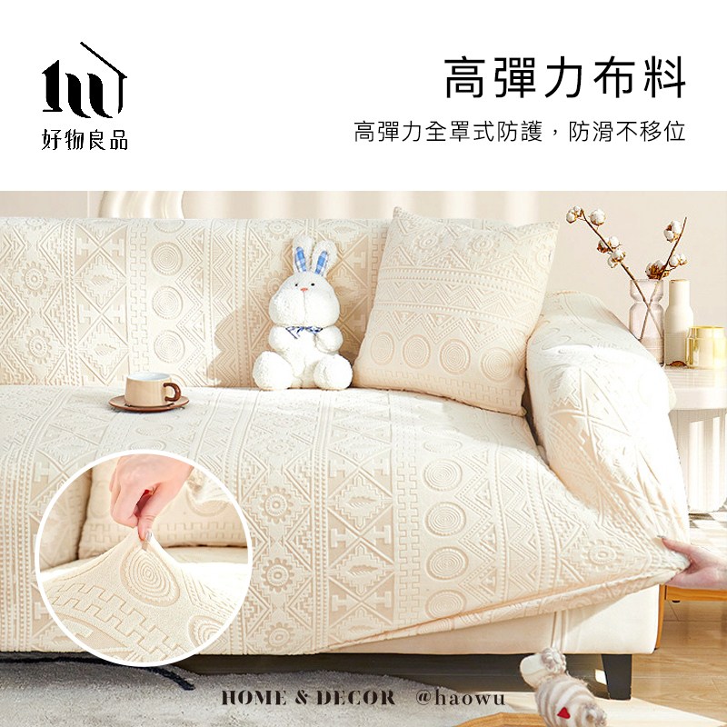 【好物良品】藝術紋理系列《深灰色》防貓抓系列高彈力立體提花彈力沙發罩|贈抱枕套*1+泡棉條