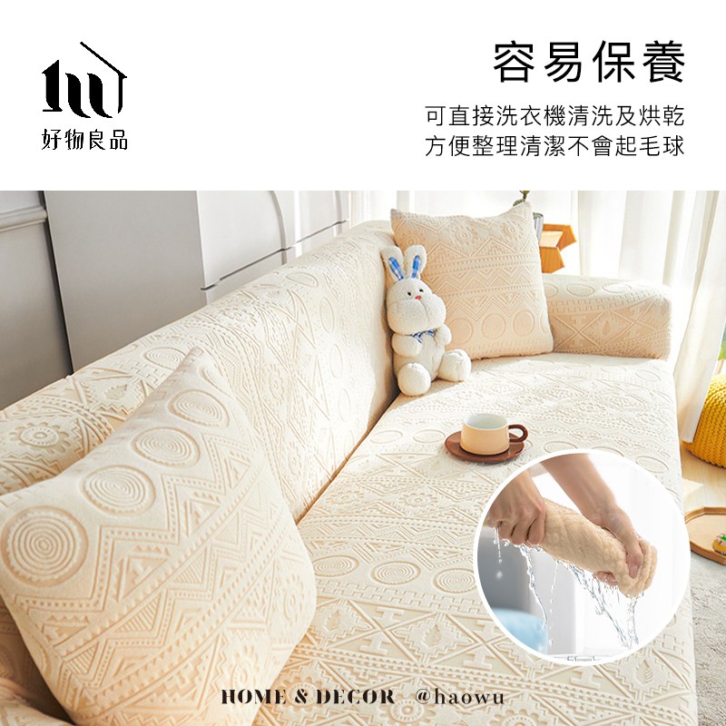 點我下載【好物良品】《四人座波西米亞系列》立體提花彈力沙發罩230~280cm|6色任選 贈抱枕套x1粉色 四人座