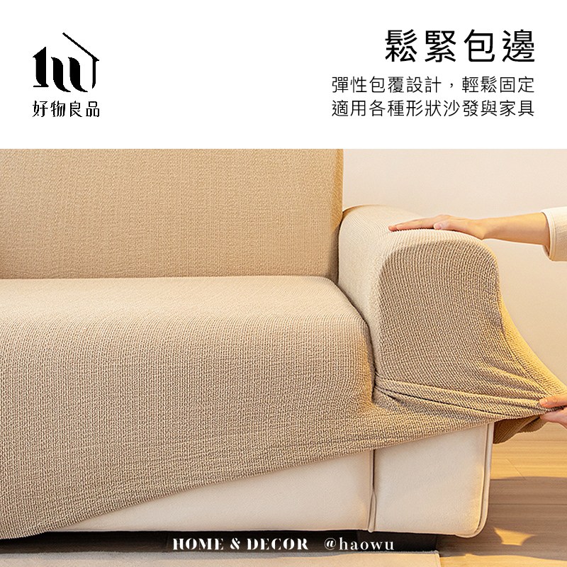 【好物良品】藝術紋理系列《深灰色》防貓抓系列高彈力立體提花彈力沙發罩|贈抱枕套*1+泡棉條