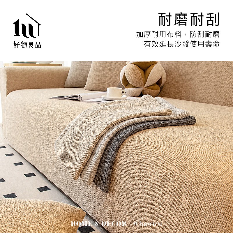 【好物良品】藝術紋理系列《深灰色》防貓抓系列高彈力立體提花彈力沙發罩|贈抱枕套*1+泡棉條