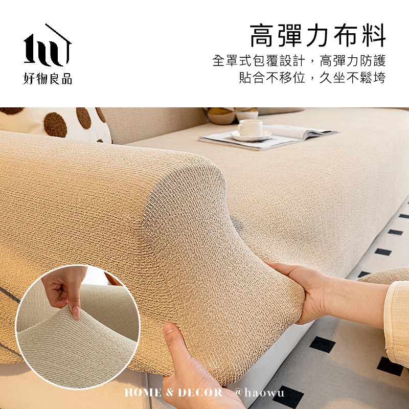 【好物良品】藝術紋理系列《深灰色》防貓抓系列高彈力立體提花彈力沙發罩|贈抱枕套*1+泡棉條